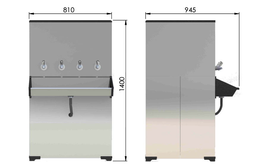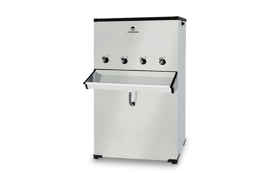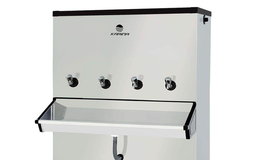DADOS TÉCNICOS 04 torneiras em latão cromado; Controle da temperatura da água; Capacidade de 200 Litros; Gás ecológico R 134A; Tanque interno em pp atóxico