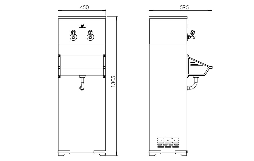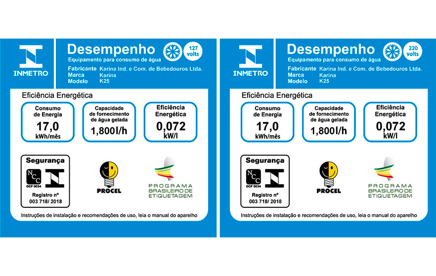 DADOS TÉCNICOS 02 torneiras em latão cromado; Controle da temperatura da água; Capacidade de 20 Litros; Gás ecológico R 134A; Tanque interno em pp atóxico