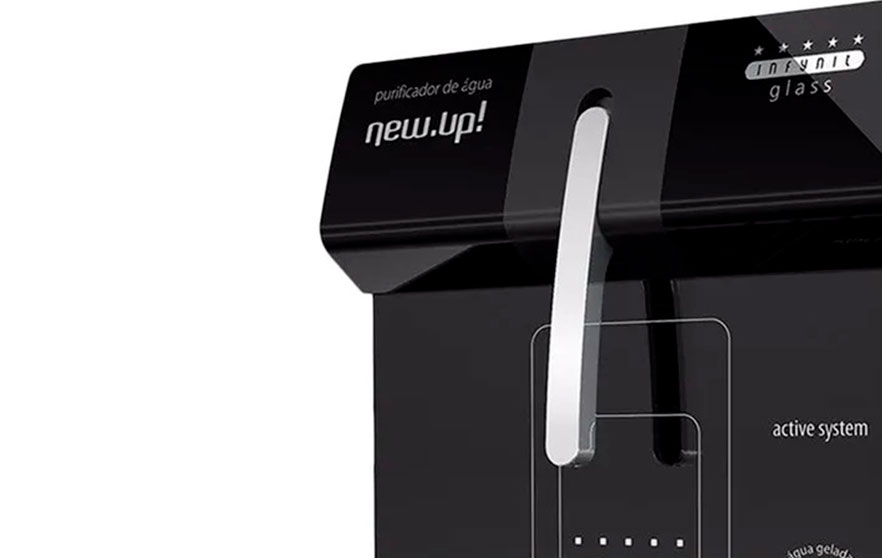 O purificador de água Infynit Glass chegou para revolucionar você e sua saúde, o único purificador com design frontal em vidro, extremamente moderno que possui sistema de saída de água basculante, oferece água purificada, natural e gelada com uma capacidade em refrigeração de 0,803 L/h (água gelada)