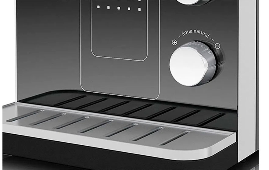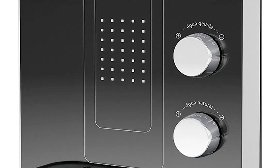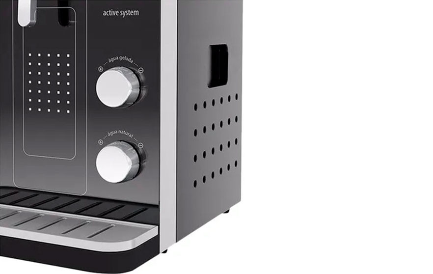 Fornece alça prática para o transporte, tampa e pingadeira removível e facilidade para a troca do filtro. Equipado com compressor disponibiliza reservatório vedante e tubulação em material atóxico. Proporcionando maior saúde através de sua eficiência bacteriológica e retenção de partículas de classe F.