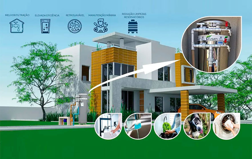 Características Linha completa de filtro de água central e sistemas de tratamento de água. Filtro de água de entrada para residências, comércio e industriais Possui sistema de filtração de água e purificação inovadores e de alta qualidade.