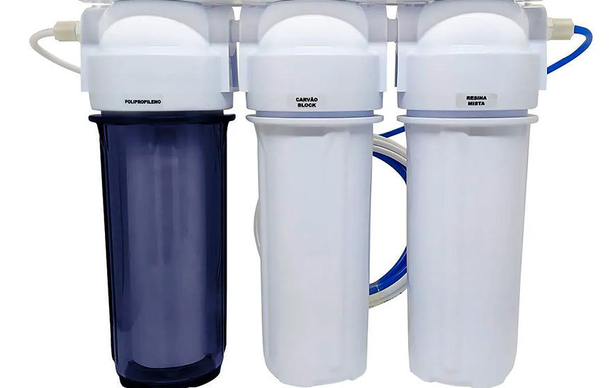 Equipamento para retirar partículas de sujeiras, cor, metais e mineras da água, produzindo água deionizada. Possui tratamento com Carvão em bloco e resina Mista. Geralmente utilizado em hospitais, laboratório de analises, residências, para aquários marinhos e água doce.