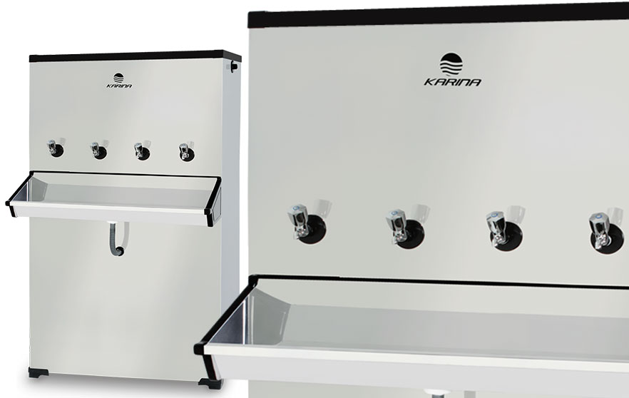 DADOS TÉCNICOS 04 torneiras em latão cromado; Controle da temperatura da água; Capacidade de 200 Litros; Gás ecológico R 134A; Tanque interno em pp atóxico
