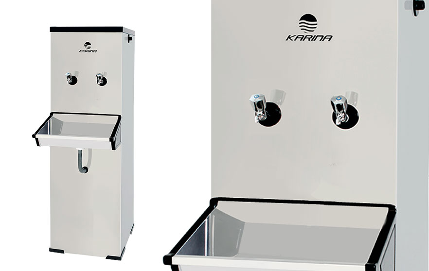DADOS TÉCNICOS 02 torneiras em latão cromado; Controle da temperatura da água; Capacidade de 20 Litros; Gás ecológico R 134A; Tanque interno em pp atóxico