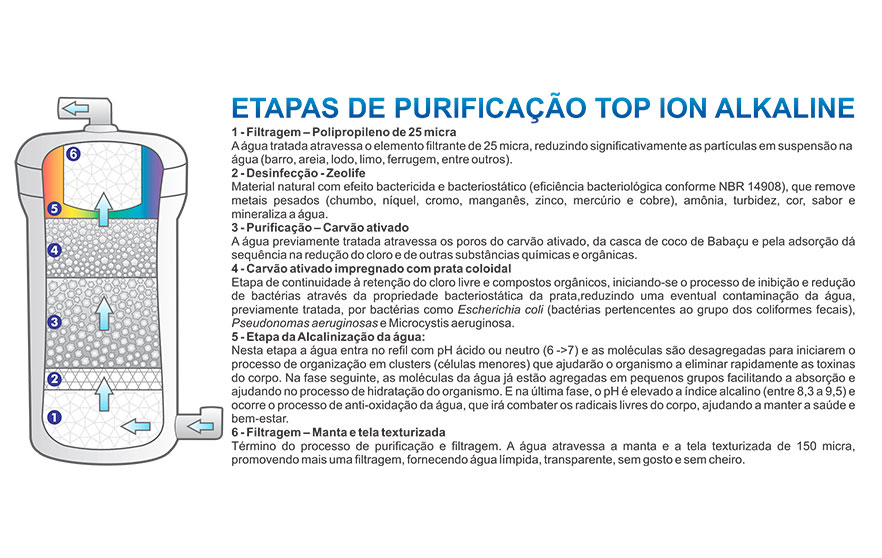 Transforma a água da torneira em água alcalina com pH entre 8 e 9.