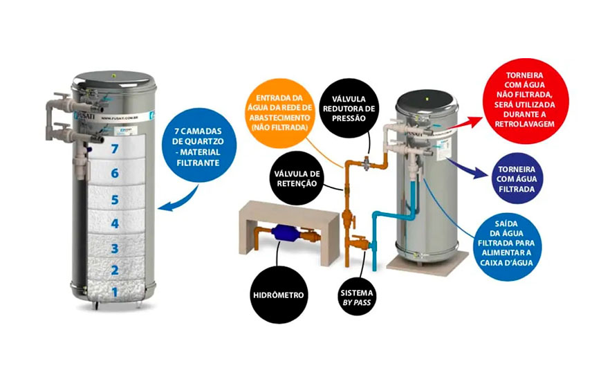 Características Linha completa de filtro de água central e sistemas de tratamento de água. Filtro de água de entrada para residências, comércio e industriais Possui sistema de filtração de água e purificação inovadores e de alta qualidade.